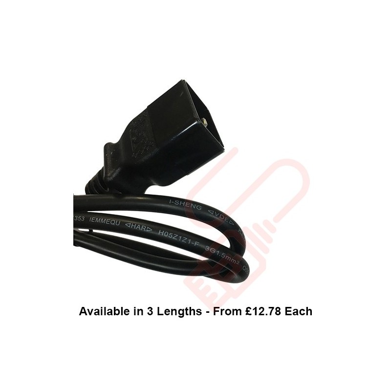 Data Centre grade power cable with C20 Plug fit in to C19 inlets on either a PDU or UPS. |