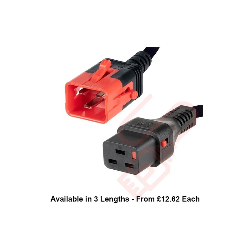 Our IEC C20 - C19 Dual Locking Power Leads ensure your devices stay connected, securely locking your connection at both ends. This improves uptime by securing both ends of the power cord. Designed to eliminate accidental disconnections, especially those caused by equipment vibration or human error. These Dual Locking cables consist of a Male C20 IEC Dual Lock Connector, a PVC 3-Core 1.5mm² Cable, and a C19 IEC Lock connector. |